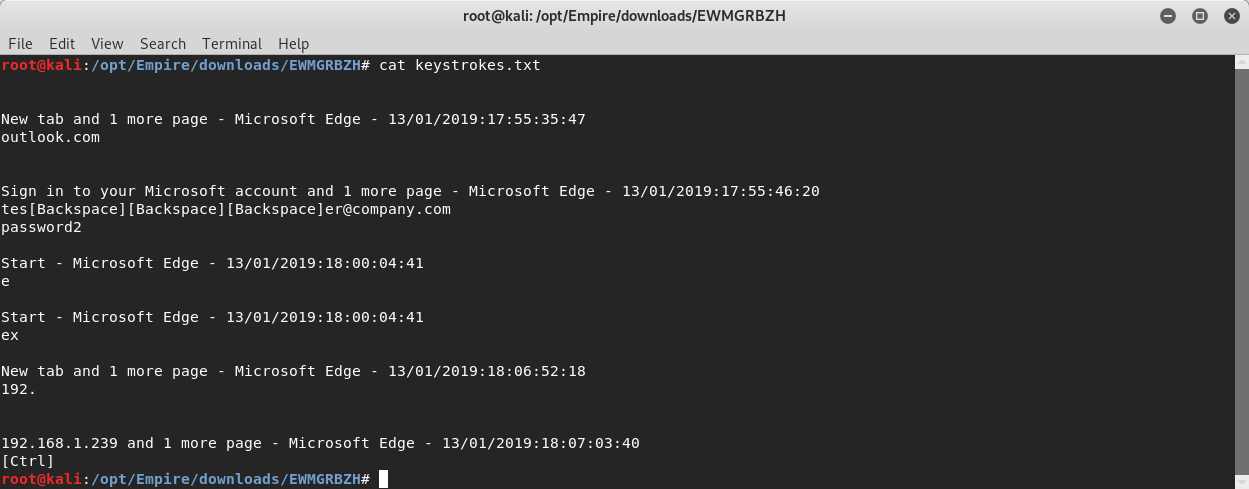 After checking I forgot something very important the RDP port is open, so this means, I have a chance into connecting into the PC with a full GUI but there was one issue, I don’t have a password….But as a penetration tester (ha ha) I decided that wasn’t going to stop me so I was trying many options hashes, Weak-Creds and Social Engineering but the first didn’t work because of my permissions and the others will take time and lot’s of luck since he is expecting this, so another idea came to mind a simple Key Logger, that’s where Empire strikes again I started running the key logger module and tested my Luck
