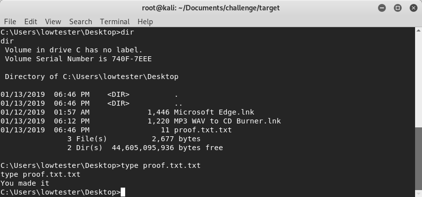 W00t!! Finally the SYSTEM shell access I had everything I needed and a shell with the highest privileges now to finish this off I needed the proof.txt and I was done