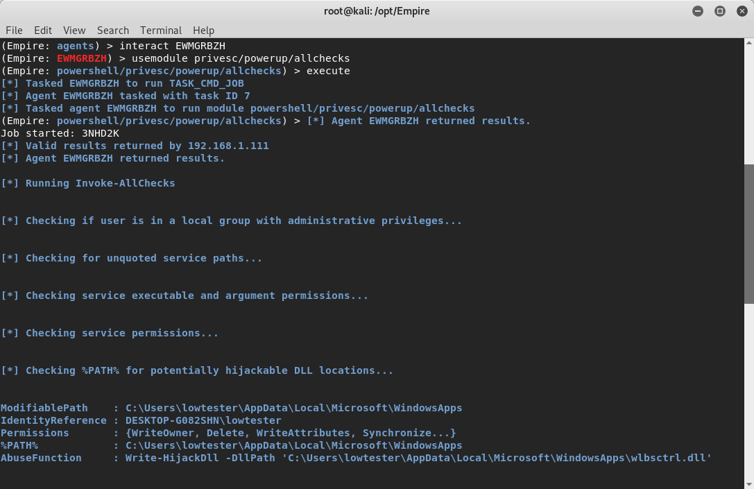 So after checking around I wanted to continue and get SYSTEM access and give my friend his “Proof” so after this I utilized my one of my personal favorite Post-Exploitation Tool Empire so first we need to create the powershell listener and get it to the PC we will move to a shell and use this One-Liner from HAK5 and host the file from our attacking machine using python and then receive an agent