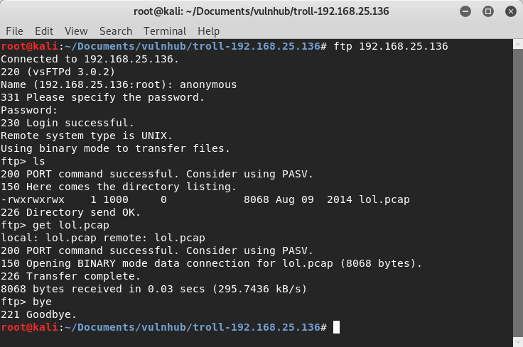 As we logged in there is only 1 file to be seen and it’s called what a troll let’s download the file and examine it on our Attacking machinelol.pcap