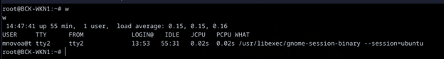 Only one local user, now the interesting part is to enumerate the Active Directory now, but since we don’t hold credentials for our a domain user and some methods and tools require credentials I’ll need to locate a potential user first by using the “w” command we can see if there are any active users on the machine that may give us an idea of the users that are available, the time they logged in, IDLE time and much more information this can also point out the naming convention of the internal AD users.