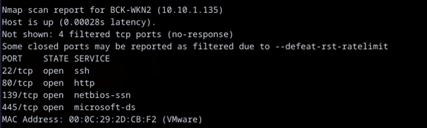 Having the open port information lets me apply a targeted scan to wat information I want to gather this way I am not guessing and trying multiple ports at a time and only focusing my information gathering at the openly available ones in this case port 80 and 445 are the most interesting ones, I’ve utilized the same methods as previously with nmap to avoid detection.