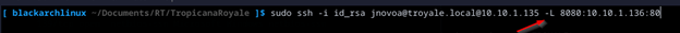 The HTTP protocol and the well known port 445 SMB running on a Windows 7 machine potentially vulnerable to the Eternablue[1] exploit are the interesting ones I’ll take the approach at looking at port 80 but remember the port isn’t open to the internet so setting up a reverse proxy onto the Browser should be a potential next step this time I will setup a Local Port forward with SSH since I know the target server and the port I am trying to reach I can tell SSH to do that with the “-L” flag: