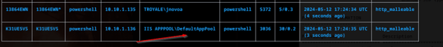 Now I’ll upgrade to an Empire agent to utilize the tools built within again and keep my enumeration running, but I do have to be creative and fix some formatting with my agent since I was receiving errors when executing the PowerShell command from Empire, once I get an agent calling back, I see the current user being DefaultAppPool