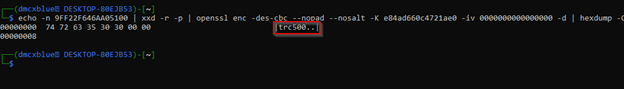Now VNC uses a hardcoded DES key to store credentials. The same key is used across multiple product lines. To decrypt this, we can actually use a Linux One Liner