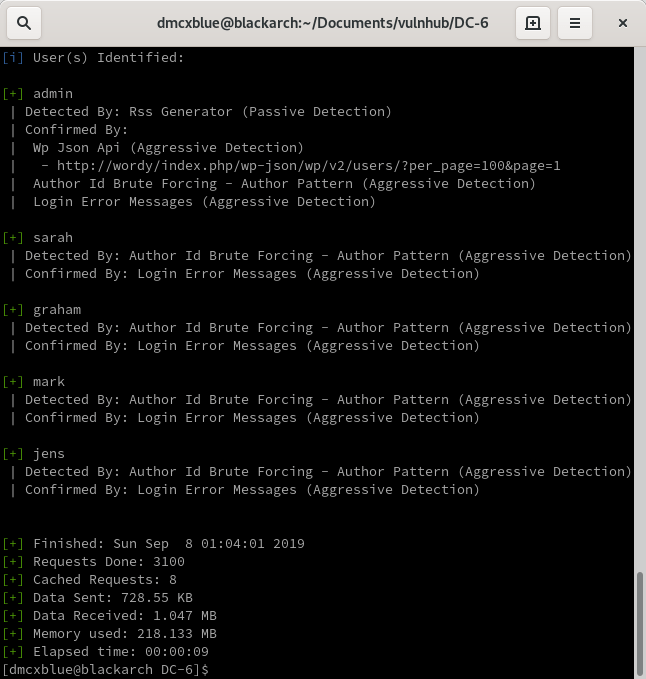 We can see it is running a wordpress page so we will move into a wordpress scan, NO vulnerabilities with Access just XSS but we did find a few users