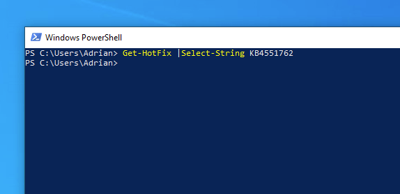 We can search with the PowerShell Cmdlet Get-Hotfix
