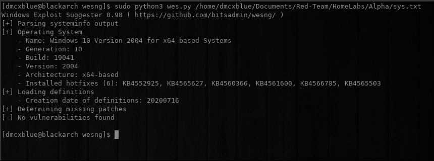 Another amazing tool I stumbled upon Thank You Twitter. The creator loved the Windows-Exploit-Suggester by GDS Security but unfortunately it hasn’t been updated since 2017 so taking matters into his own hands BOOM, WESNG was born and has been using the latest information for exploits. Its very easy to use, on your regular shell grab the sysinfo.exe information save it onto a txt file and run the script with file as a parameter.